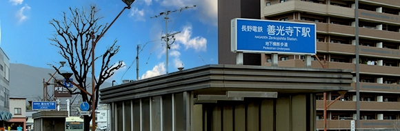 🚃電車長野電鉄長野線「善光寺下」駅 4番出口すぐ。雨の日もアクセスしやすい立地です。
